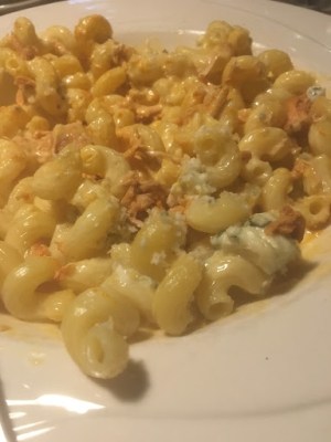 The blue cheese definitely gives this plate a bold kick of flavor, as does the smoked chicken. The smoky taste mixed with the sharp essence of the blue cheese makes this macaroni far from bland, but not bold to the point where you’re like “holy shit”. I think the creamier sauce on it is cheddar, so you also don’t lose the essence of O.G. mac.